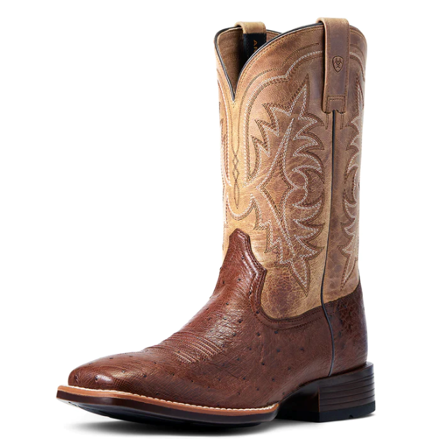 Smooth quill ostrich adds a sophisticated touch to this classic cowboy boot. Built on our ultralight Bantamweight sole, it's as easy on your feet as it is on the eyes. ATS® lightweight forked shank for enhanced support Exotic ostrich foot and full-grain leather upper Leather lining Removable Pro Performance insole for cushioning and shock absorption Lightweight, flexible Bantamweight™ sole Double stitch welt Five-row stitch pattern Easy pull-on style Approved for riding Exotic ostrich foot and full-grain leather upper Leather lining