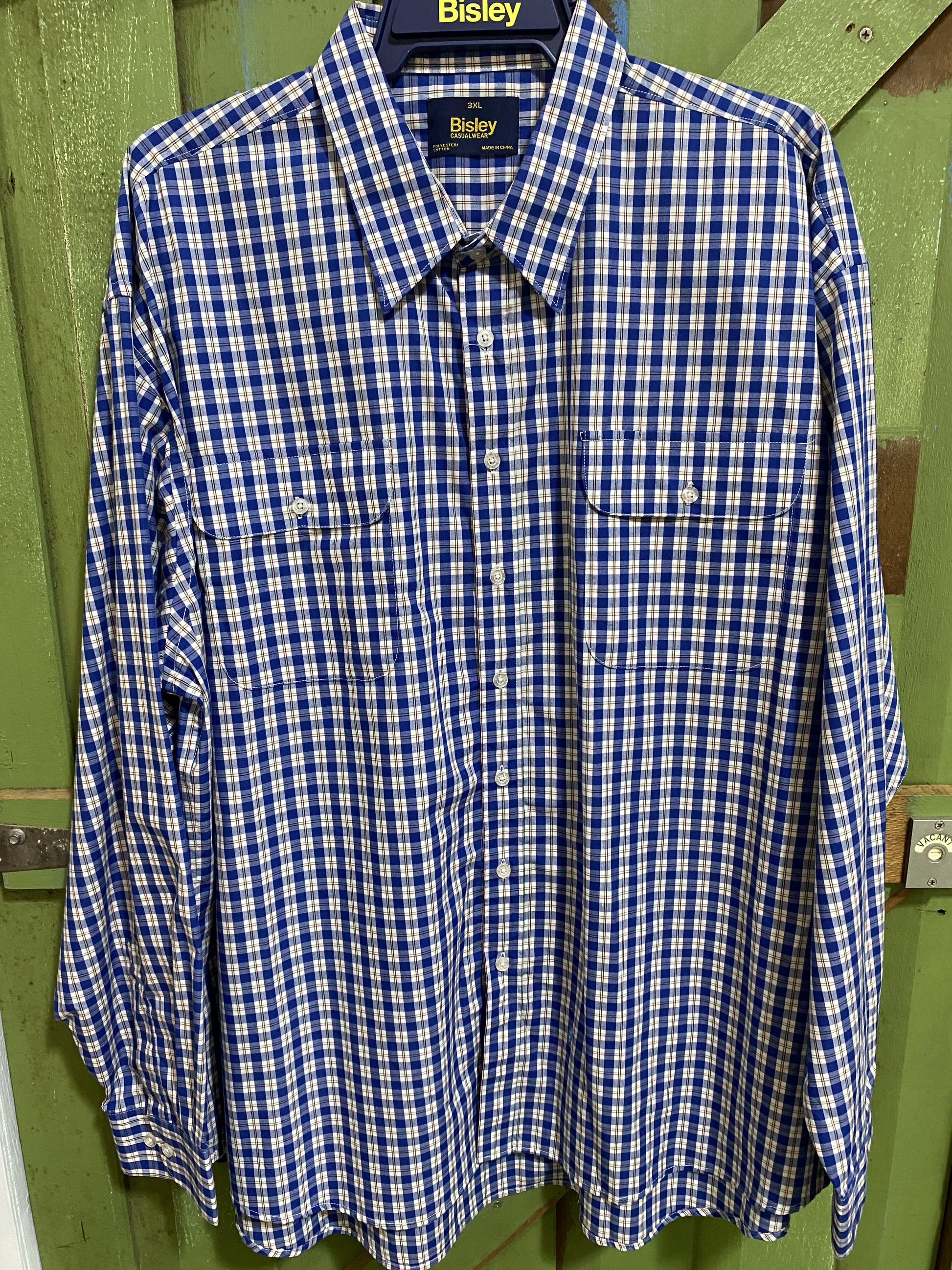 Western Shirt from Bisley. Features full button front, buttoned cuffs and two buttoned chest pockets with a pen keeper on the left side chest pocket. Made from Polyester/Cotton blend. We recommend going down one size due to generous sizing.