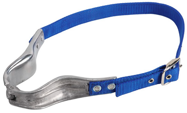 • Strong aluminium throat piece hinged to apply the proper pressure on the throat when the horse "cribs".