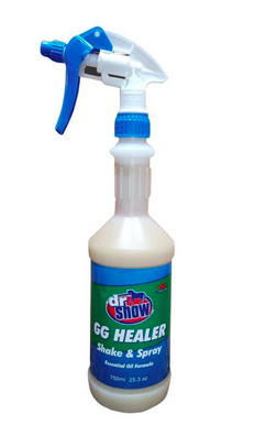 Dr Show GG Healer Shake & Spray Essential Oil Formula is a general purpose fast penetrating spray to aid in the healing of a variety skin issues. The liquid is ideal for penetrating deep into the dock or similar areas where our cream would not penetrate as well. Applied regularly you will find the healing, anti-inflammatory, antiseptic & soothing properties of the natural oils in the formula may aid in healing and recovery. GG Healer Shake & Spray has our unique blend of Tea Tree, Cedarwood, Chamomile, Rosemary, Patchouli, Ylang Ylang, Coconut & Pine Tar Oils. Aloe Vera to aid in healing and Ethanol to give additional antiseptic support.
