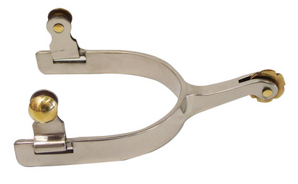 Roping spur with a 5/8 straight band with inset swinging brass buttons. 3/4 brass rowel, Ladies Roping spur with a 5/8straight band with inset swinging brass buttons. 3/4 brass rowel.