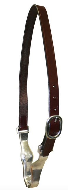 • Strong aluminium throat piece hinged to apply the proper pressure on the throat when the horse "cribs".