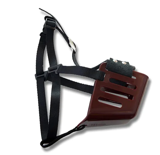 - A long lasting plastic muzzle that has a tough plastic construction with integrated nylon straps