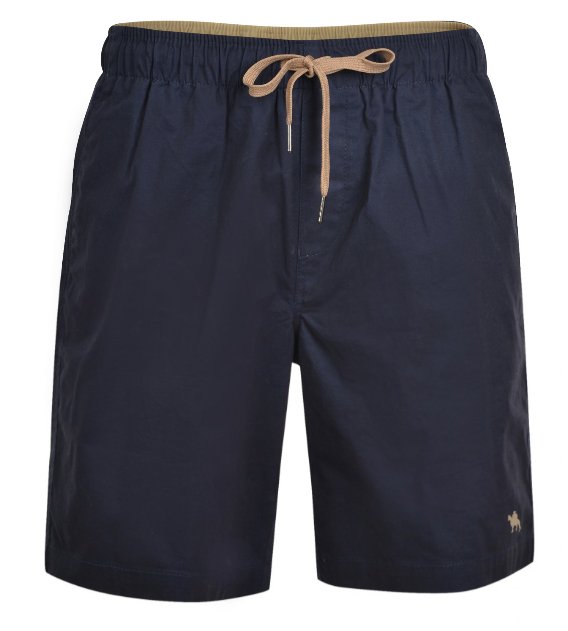 Features: Slant pocket style with elasticated waist, mock front fly with drawcords and metal ends, back patch pocket with topstitch design, contrast inner waistband facing with self fabric binding