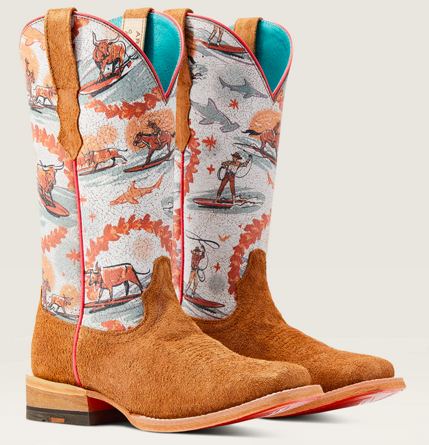 Ariat Womens Frontier Western Aloha Rusty Roughout/Surfing Longhorn Print