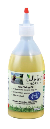 Calafea horse oil is 100% all natural oil for horses suffering from Queensland itch and sting itch. Calafea oil rapidly relieves the irritation associated with Queensland itch and then begins to repair the damaged skin. It is also a prevention and repellent against Midges, Mosquitoes, Mites and Ticks.