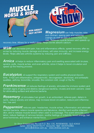 Carefully designed in consultation with industry professionals, the Dr Show Muscle System makes it easy to prep your horse prior to exercise and as a post treatment to aid with soreness and muscle excursion.