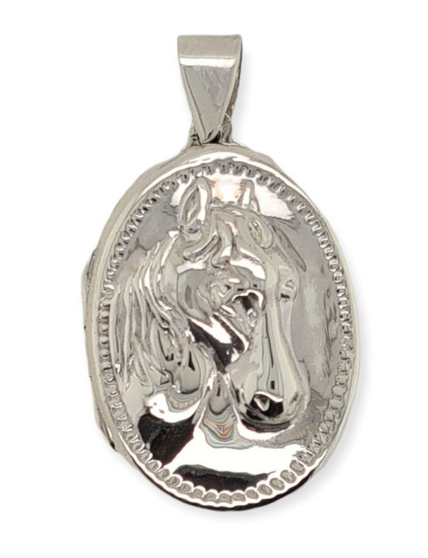 MCJ Sterling Silver Oval Horse Locket PB0623
