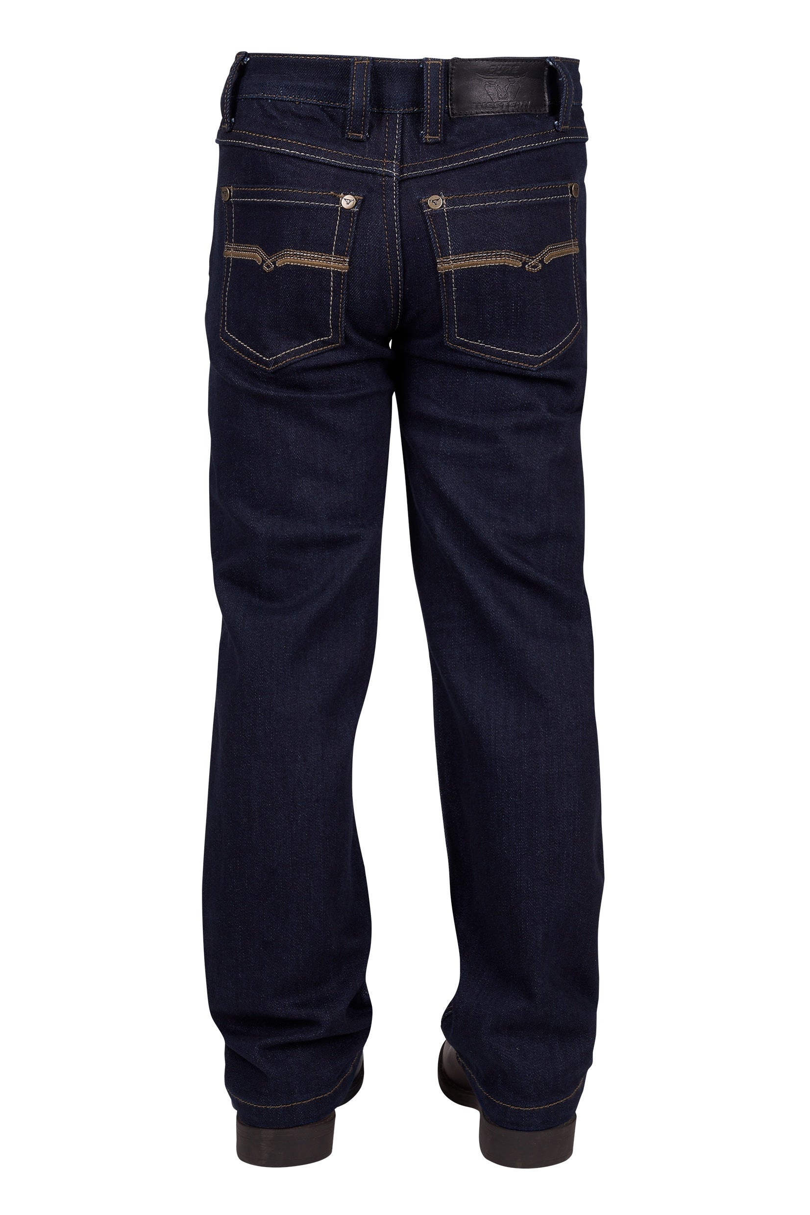 5 pocket jean in heavyweight stretch denim; fits over boots; stretch for comfort and movement; double stitched for strength; twin back belt loops; rust proof metal accessories; back waistband with mock leather label; contrast all over topstitch