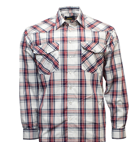 Western Shirt from Bisley. Features full press stud button front, buttoned cuffs and two buttoned chest pockets with a pen keeper on the left side chest pocket. Made from Polyester/Cotton blend. We recommend going down one size due to generous sizing.