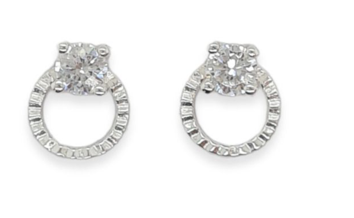 MCJ Sterling Silver and Cubic Zirconia Beaten Circle Studs