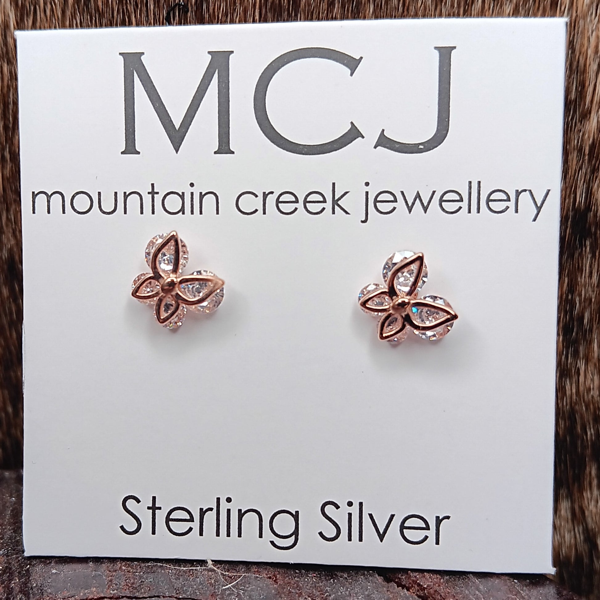 MCJ Sterling Silver & Rose Gold Plated Cubic Zirconia Butterfly Earrings