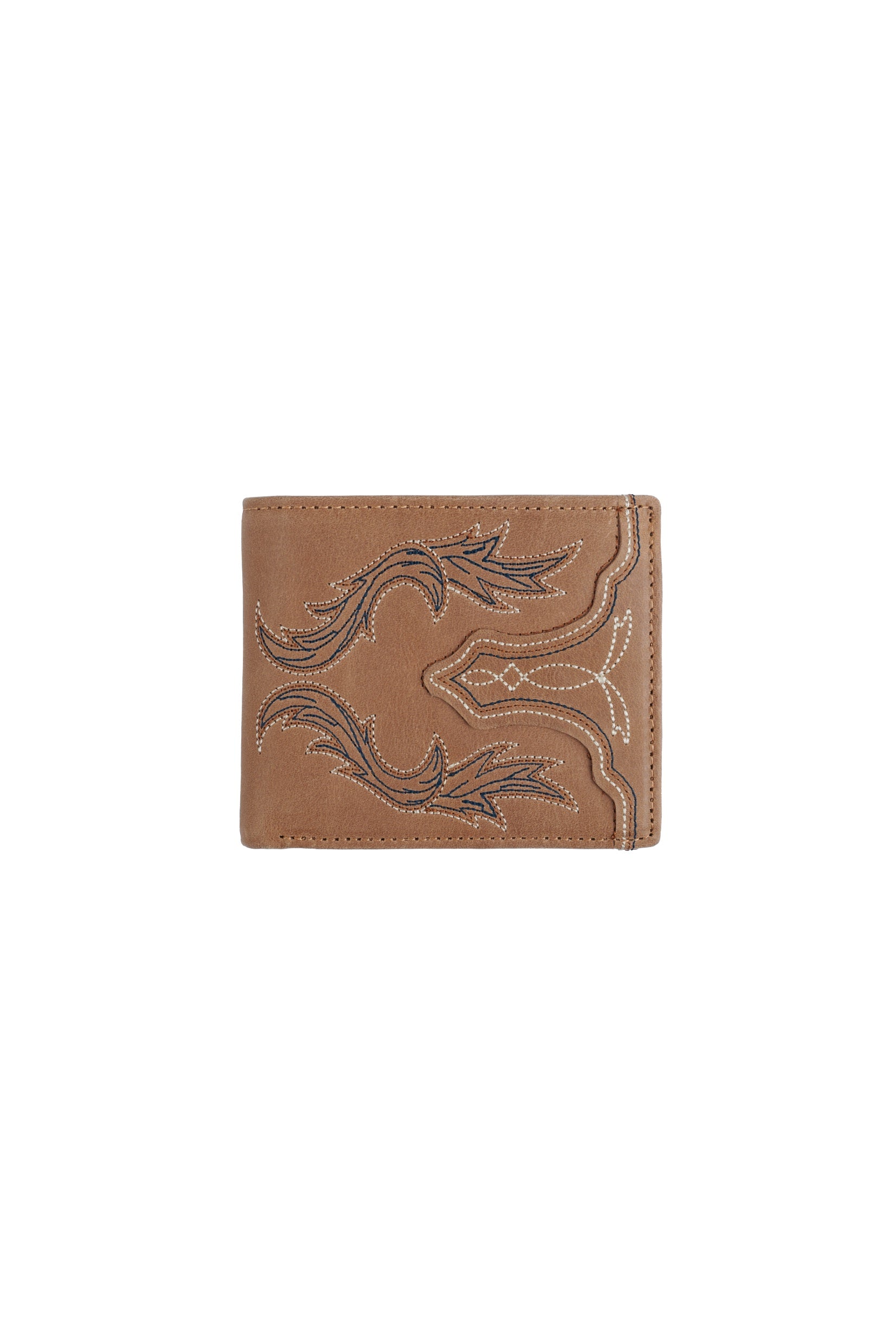 Bifold closure, contrast embroidery design, 6 x card slots and 1 x ID slot, 2 x note pockets, coin pocket with snap closure, 1 x zip pocket, Wrangler® iconic logo metal badge, RFID PROTECT technology protects your credit cards from fraud and identity theft