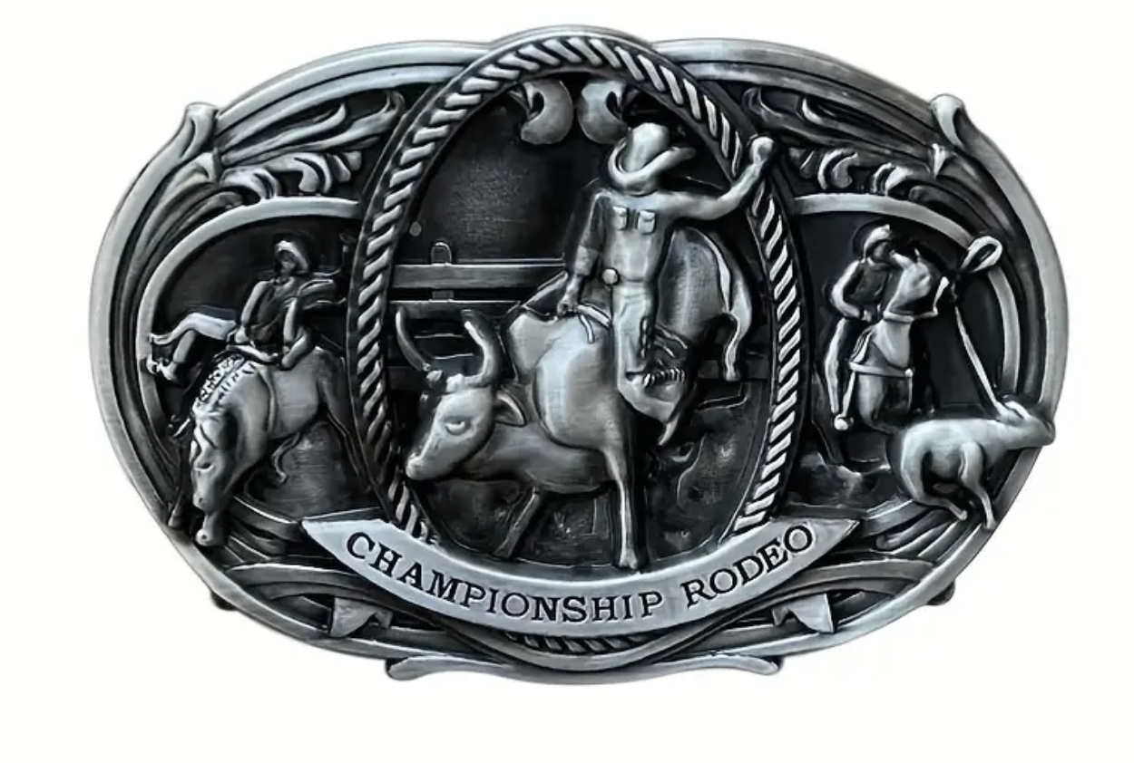Embrace the spirit of the Wild West with our Vintage Western Cowboy Bullriding Belt Buckle, crafted from high-quality zinc alloy. Featuring a striking retro bull rodeo design, this buckle captures the thrill of the rodeo with its intricate details and "Championship Rodeo" inscription. The alloy finish adds a nostalgic touch, making it not only a functional accessory but also a decorative statement piece. Versatile enough to complement both casual and formal attire, this belt buckle is perfect for rodeo enthusiasts or anyone looking to add a unique flair to their outfit. Whether you're hitting the rodeo or just aiming to showcase your Western style, this buckle is a must-have that embodies a sense of adventure and tradition.