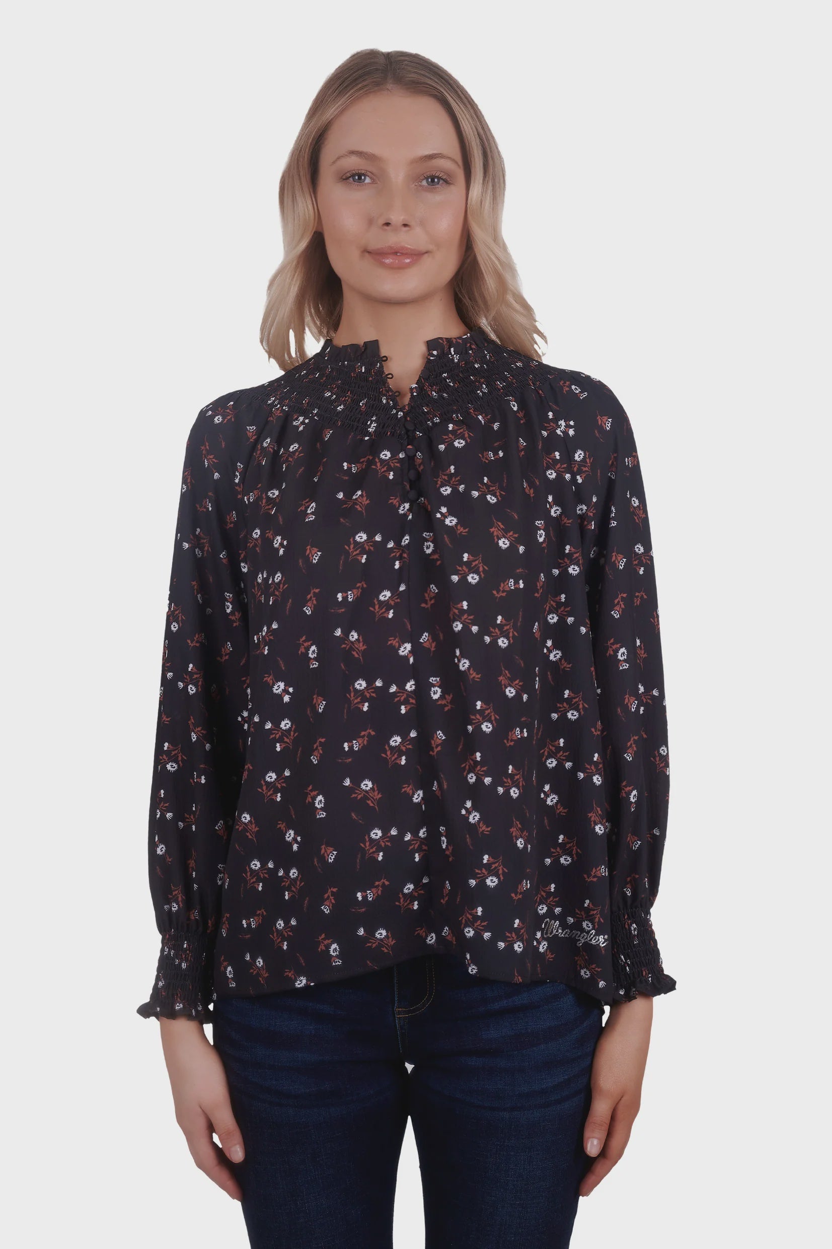 Wrangler Women's Blouse 'Clarinda' Long Sleeve Black/Brown