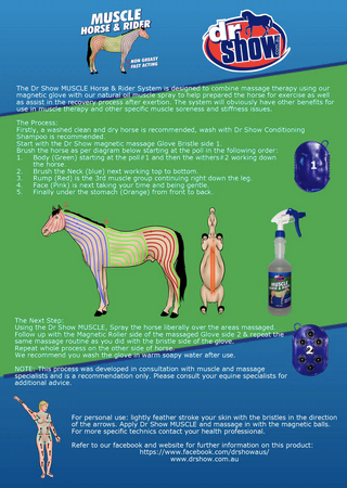 Carefully designed in consultation with industry professionals, the Dr Show Muscle System makes it easy to prep your horse prior to exercise and as a post treatment to aid with soreness and muscle excursion.