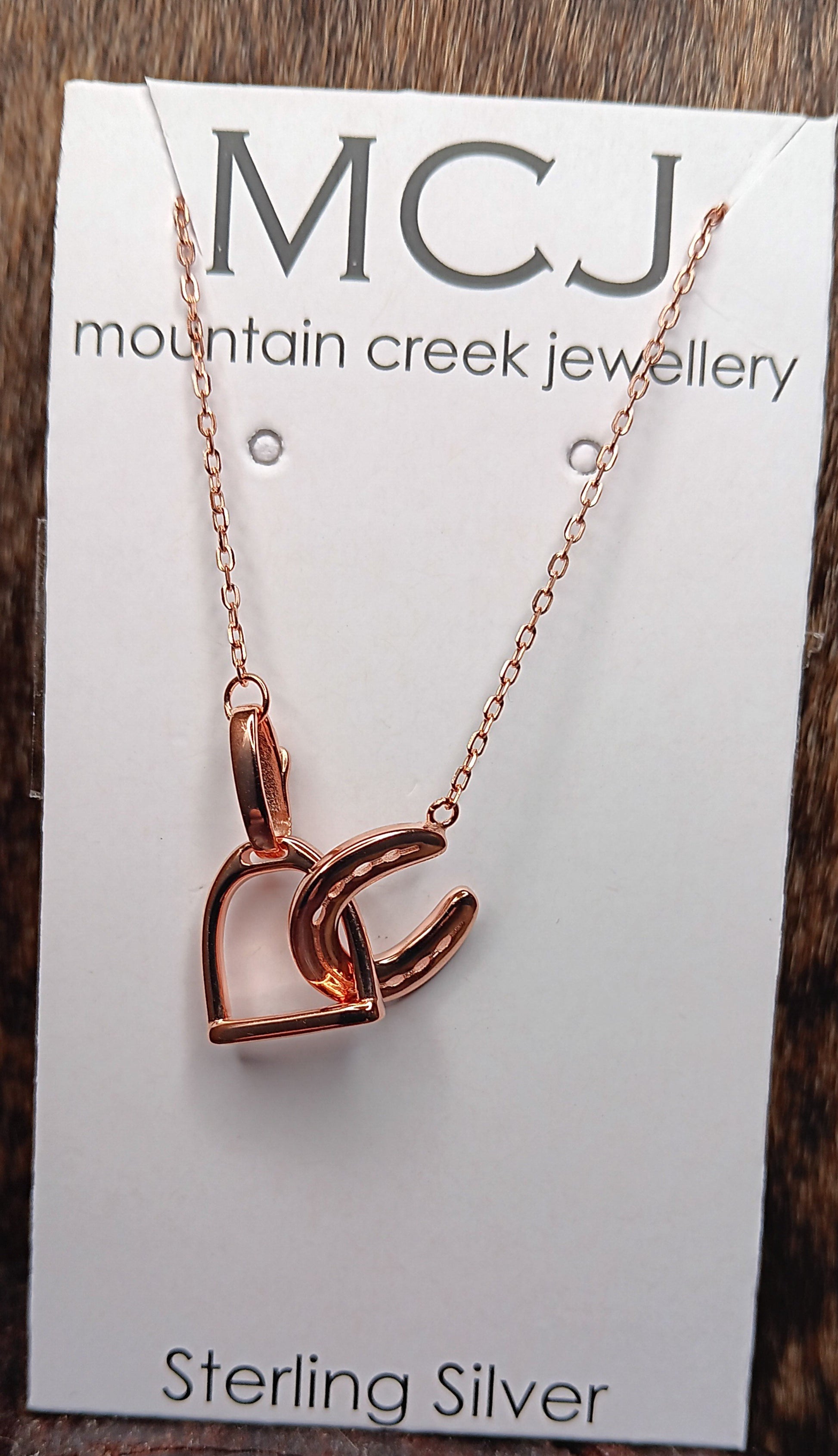 MCJ Sterling Silver and Rose Gold Interlock Horseshoe and Stirrup Necklace