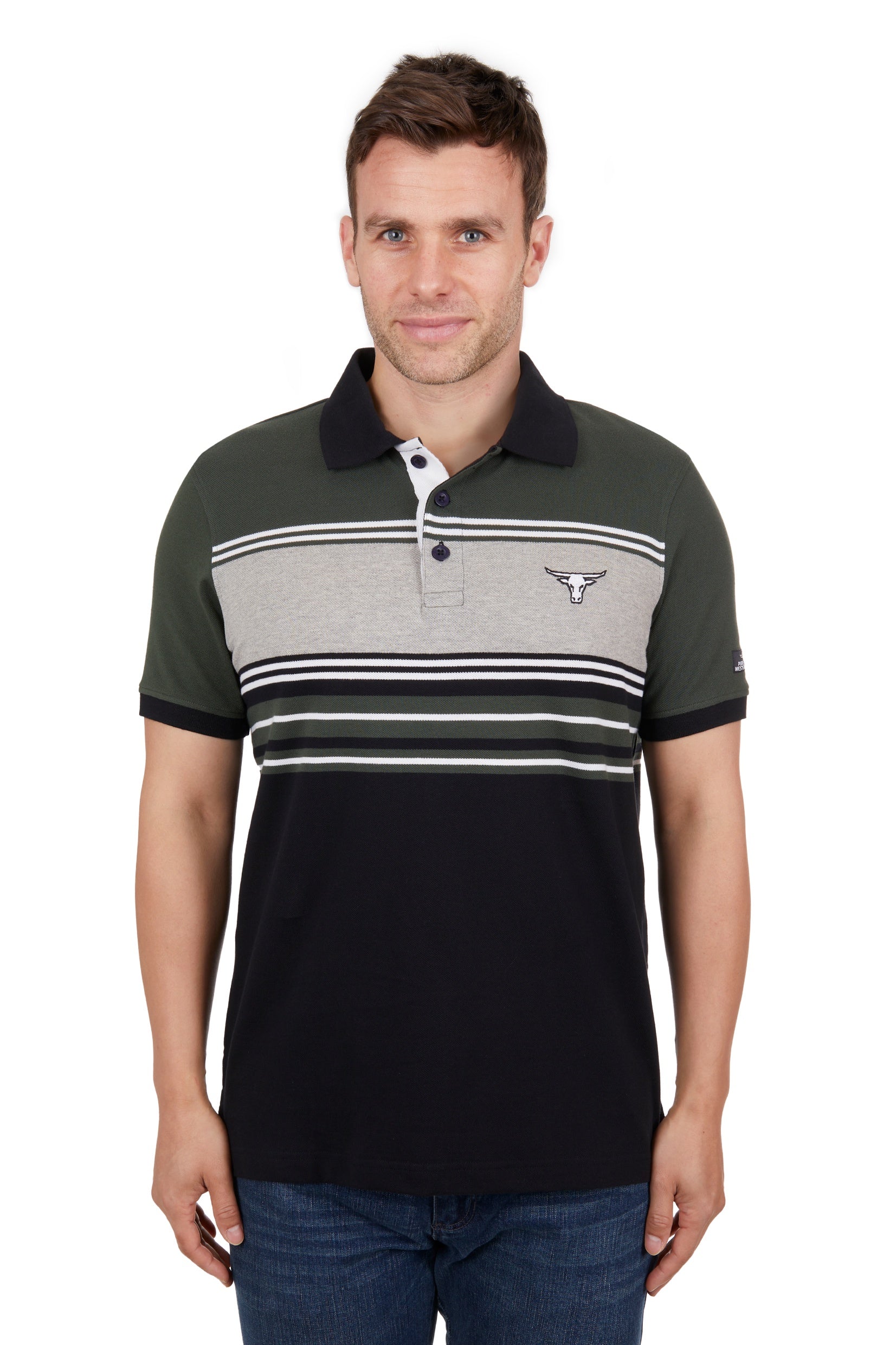 Classic polo shape, Multi colour stripe design, Pure Western chest embroidery, Pure Western back neck embroidery, Rib collar and sleeve cuffs, Premium quality herringbone taping on front placket, Pure Western logo sleeve label.