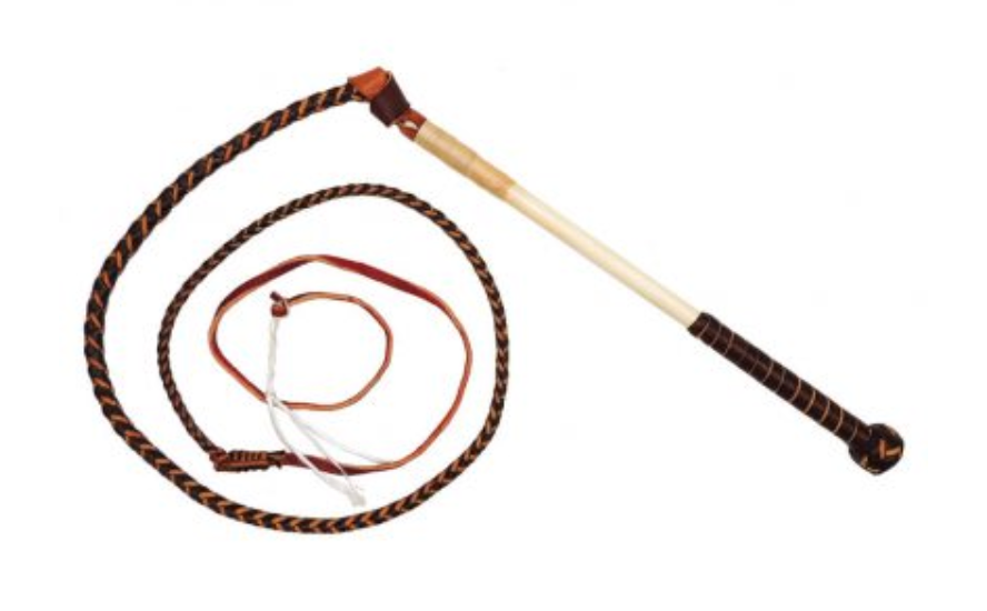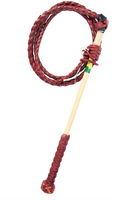 • Classical redhide stockwhip with plaited handgrip on a strong cane handle.