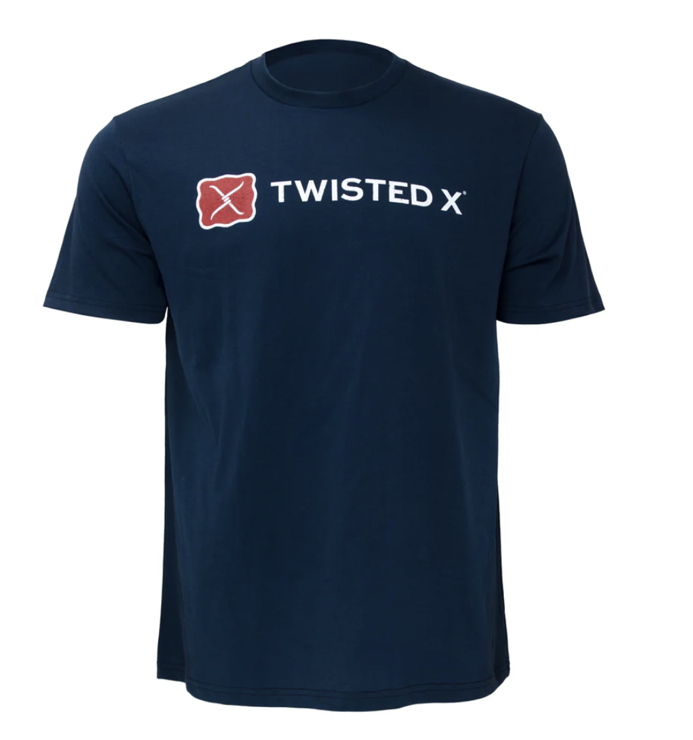 Look the part with the Twisted X Navy Logo Short Sleeve Tee! Whether you're riding your horse, enjoying a casual day out, or relaxing at the bar, this tee combines comfort and style, ensuring you look every bit the stylish cowboy.